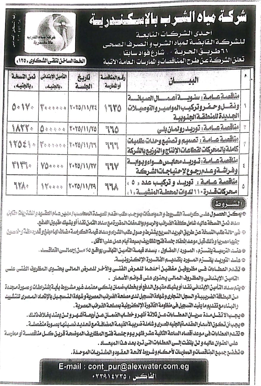 Alexandria Water Company announces the following public tenders: (1635-665-666-667-668)