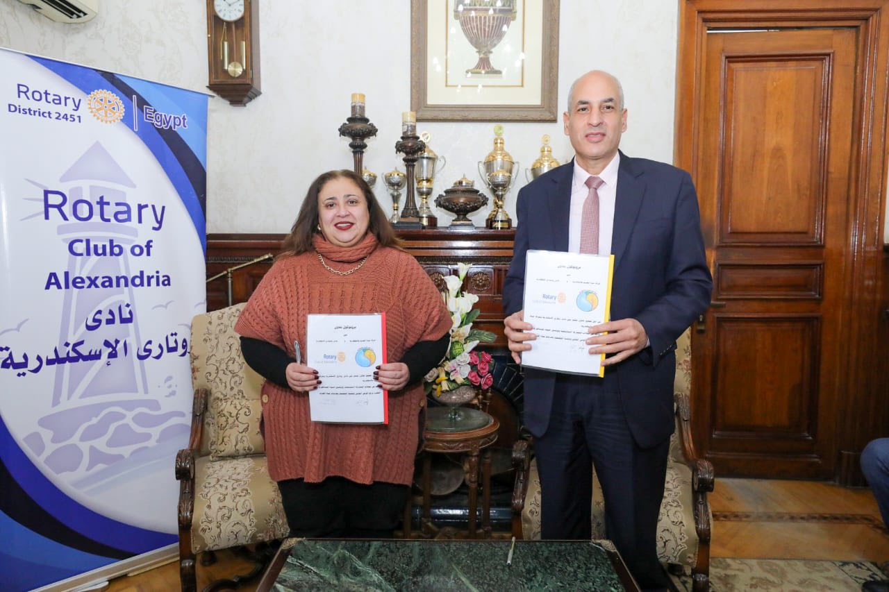 The protocol was signed on behalf of the Rotary Club of Alexandria by Dr. Rania Hassan El-Banna, President of the Rotary Club of Alexandria, in the presence of Eng. Mohamed Fathallah, Head of the Projects Committee, and Mr. Magdy Nasr, Treasurer of the Club. The protocol aims to support community development efforts and achieve sustainability in drinking water services.